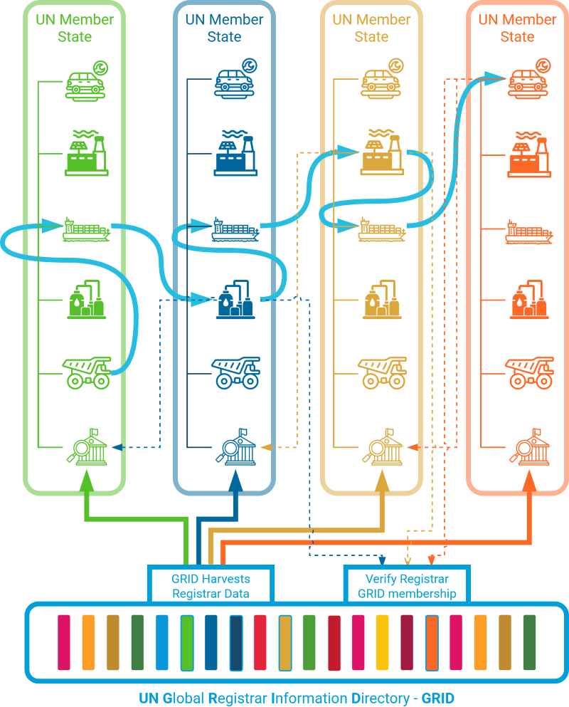 The UN/CEFACT Global Trust Registry Project (“GTR project”) is capturing and specifying the requirements, governance and technical foundation for a digital directory, publicly accessible and hosted by the United Nations, that would list authoritative registrars of participating UN Member States and the registers that they maintain. The purpose of the UN Global Registrar Information Directory (GRID) is to facilitate digital trust, verification, and interoperability in the global supply chain and public administration systems.